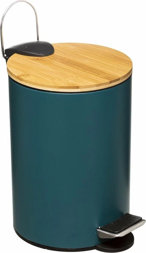 De eigentijdse petrol blauwe pedaalemmer met bamboe deksel staat super in elk interieur! Met een inhoud van 3 liter is dit afvalbakje erg compact en is daarom ideaal voor in kleines ruimtes zoals de badkamer, het toilet, de slaapkamer, keuken en kantoor. Door het kleine formaat, neemt de prullenbak niet meteen een te prominente plek aan in de ruimte waar deze staat. Ondanks het kleine formaat is de pedaalemmer erg stijlvol en oogt erg luxe door de toffe mat kleur petrol blauw en de bamboe deksel. De kleur petrol blauw is super hip en valt uitstekend te combineren met zowel donkere kleuren (zwart, grijs, antraciet) als met lichte kleuren (wit, lichtgrijs). De pedaalemmer wordt geleverd met uitneembare binnenemmer zodat u eenvoudig de afvalbak kunt legen. Tevens bevindt zich aan de achterkant van de prullenbak een handgreep zodat u deze gemakkelijk kunt verplaatsen. De kenmerken:âœ”ï¸ Merk: Five ®âœ”ï¸ Uitneembare binnenemmerâœ”ï¸ Inhoud van 3 literâœ”ï¸ Compact formaat en hierdoor ideaal voor kleine ruimtesâœ”ï¸ Eigentijds door de petrol blauwe kleur & de bamboe dekselâœ”ï¸ Leuk design voor een betaalbaar prijsje ✓ TIP!! Ook leuk om te geven als een orgineel cadeau✓ Neem ook eens een kijkje op onze verkooppagina voor ons verdere assortiment met andere leuke & orginele artikelen!