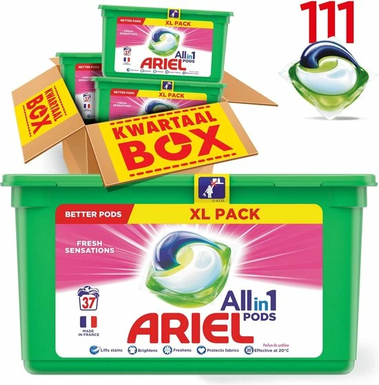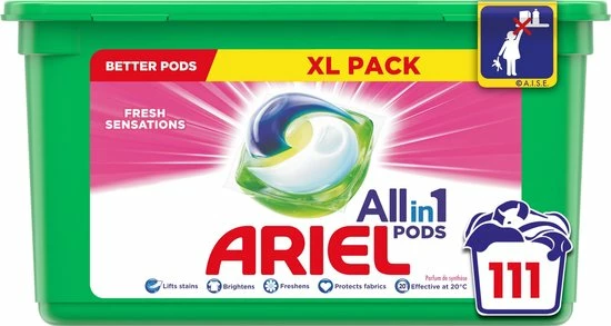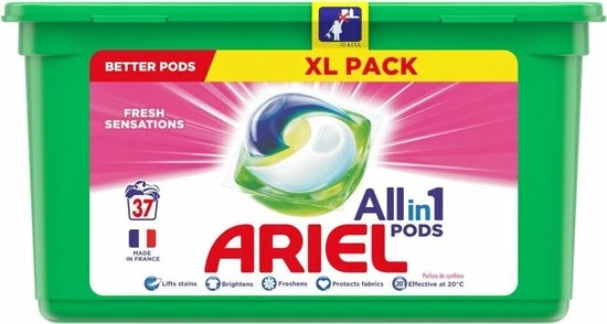 De krachtige Ariel 3in1 Pods-formule biedt geweldige reiniging en vlekverwijdering in slechts één wasbeurt.