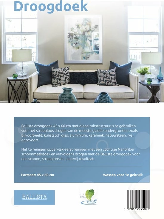 Eigenschappen van de Ballista droogdoek 45 x 60 cm.