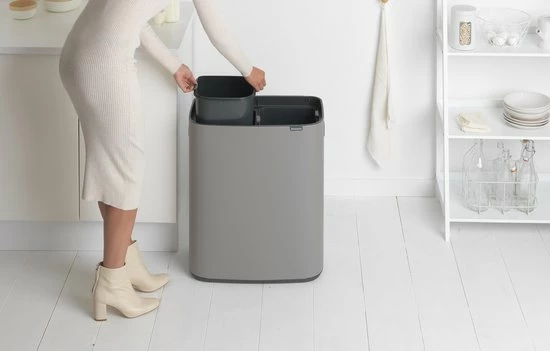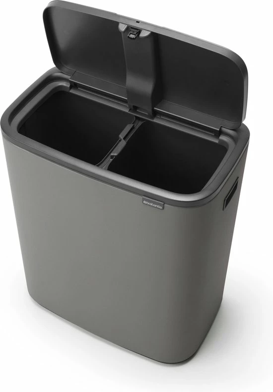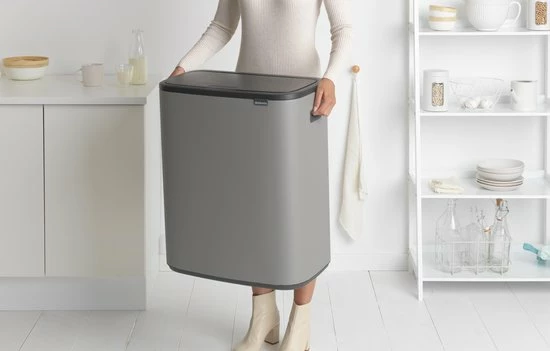 Ontdek de modieuze Brabantia Bo Touch Bin. Een stijlvolle en handige prullenbak waarmee je met gemak je afval scheidt. Dankzij twee losse binnenemmers van 30 liter kan Bo 2 soorten afval aan. Bo past perfect tegen de muur en is erg stabiel. De deksel is makkelijk en licht te bedienen en sluit met de zachtste aanraking, dankzij het Soft Touch’ open- en sluitsysteem.