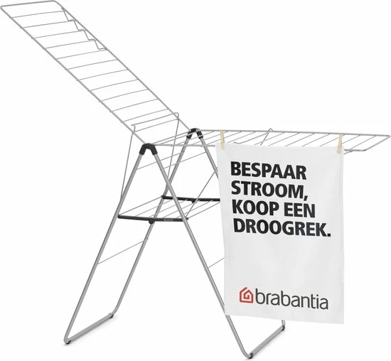Brabantia is vastberaden op weg om al haar ontwerpen 100% circulair te maken. Dit droogrek helpt je niet alleen bij het besparen van energiekosten, maar is ook aardig duurzaam van zichzelf. Deze handige kanjer heeft namelijk een Bronzen Cradle-to-Cradle® certificering. Hij voldoet aan strenge eisen voor het (her)gebruik van materialen, hernieuwbare energie, watermanagement en sociale rechtvaardigheid. Hoe mooi is dat?