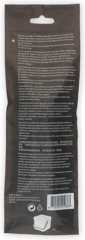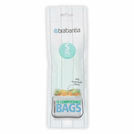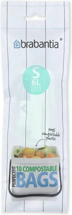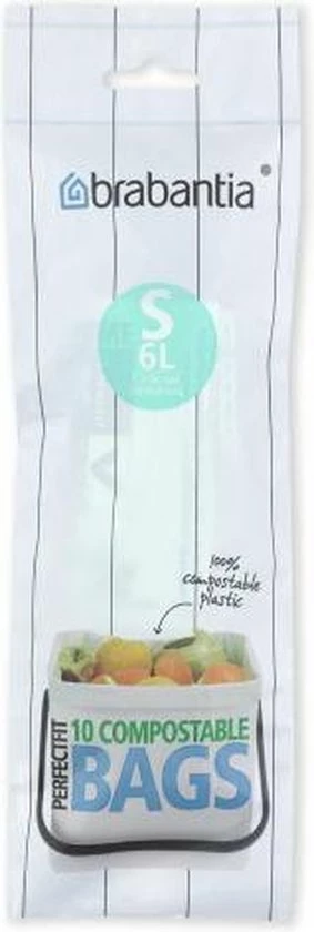 Voor elke bak een passende zak met de Brabantia PerfectFit Composteerbare Vuilniszakken – 6 l. Deze sterke vuilniszakken kunnen compleet met inhoud bij het composteerbare afval. Ze zijn dus zeer milieuvriendelijk! De afvalzakken zijn op maat gemaakt voor Brabantia prullenbakken en daardoor onzichtbaar als het deksel dicht is.