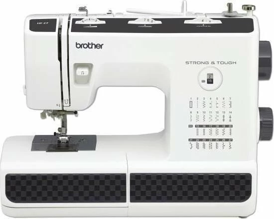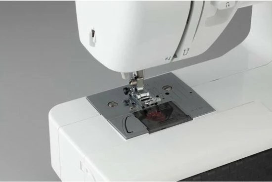 27 punten met nuttige en decoratieve stiksels, inclusief 1 100% automatisch knoopsgat – Naaldinrijgsysteem – LED-verlichting – Vrije arm – Steeklengte en breedte-aanpassingen – Verlaging van 6 tanden – Naaldplaat – Metalen haak – Inbegrepen: Set van complete accessoires + dvd – Garantie: 2 jaar