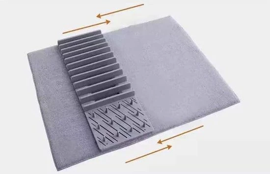 Afdruipmat en afdruiprek in één. Ideaal voor compacte keukens waar je georganisserd en netjes de afwas wilt drogen. De microvezel afdruipmat absorbeert tot 7x zijn gewicht aan vocht en houdt het aanrecht droog. Ideaal dus voor het drogen van potten, pannen, servies, glaswerk en bestek.