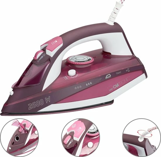 De hoogwaardige, krasbestendige keramische zool van Clatronic verwarmt snel en garandeert de ideale glijeigenschappen op verschillende stoffen zoals katoen, linnen, synthetische of wol.