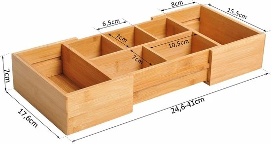 Je kent het wel, je trekt je lade open en het is een wirwar van spullen. Alles ligt door elkaar, zit in de knoop en je kan niets vinden of pakken. In veel huishoudens is dit een grote ergernis. Los deze ergernis vandaag nog op en schaf deze handige duurzame ladeorganizer uit bamboe hout aan.