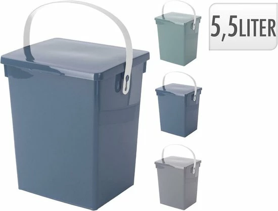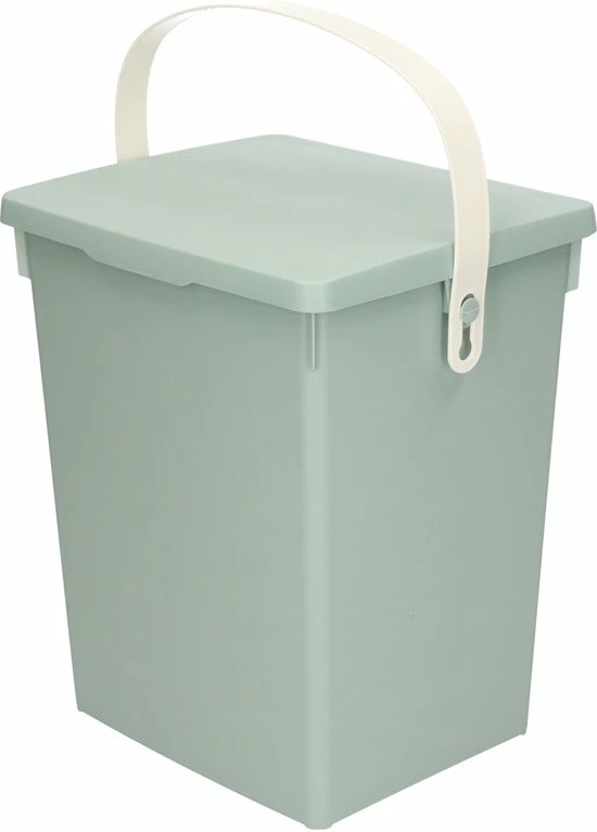Groene afsluitbare vuilnisbak/afvalbak voor gft/organisch afval 5,5 liter. Het afvalbakje is geurdicht en heeft een verwijderbaar handvat. Afmeting: ca. 19 x 18 x 24 cm. Materiaal: kunststof. Voorkom vieze geurtjes en fruitvliegjes.