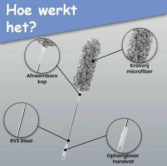 Fain® Plumeau Met Telescoopsteel – Grijs – 80 Tot 240 Cm – Inclusief Microvezel Doek – Uitschuifbaar – Wasbaar – Flexibel 360° Draaibaar – Duster – Microvezel Ragebol