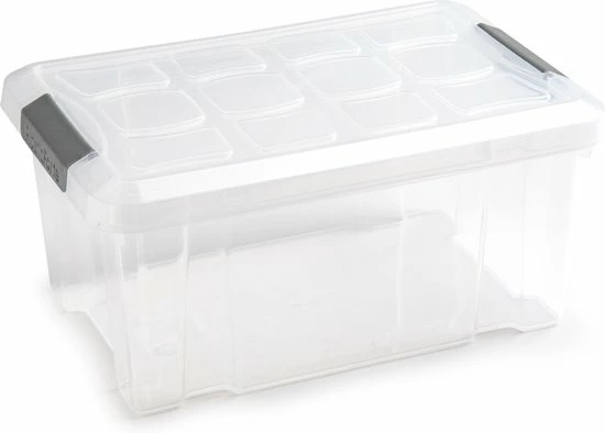 1x stuks Opslagbakken/organizers met deksel 5 liter 29 cm. Transparante opbergbakken met deksel welke is voorzien van grijze sluitclips. Handig voor het opbergen van spulletjes. Inhoud: ca. 5 liter. Formaat: 29 x 19 x 14 cm. Materiaal: kunststof (plastic). Organizers/opbergbakken voor badkamer, huis of kantoor.