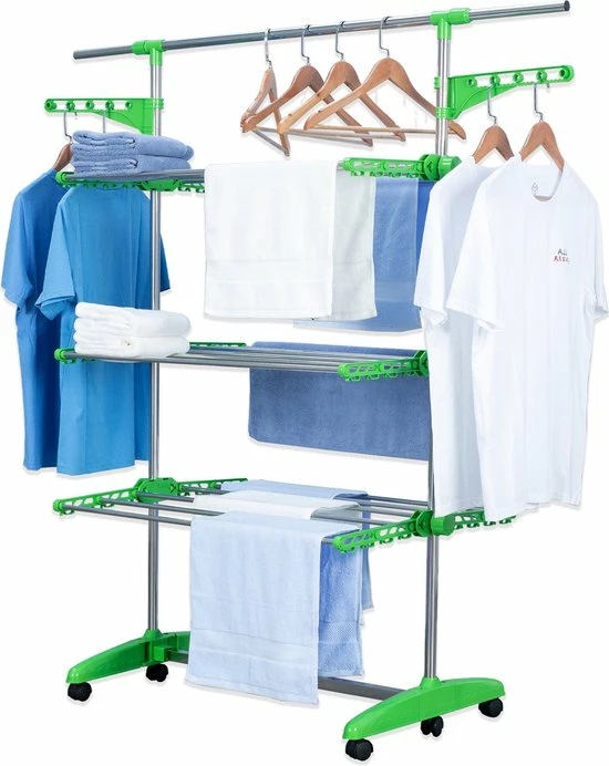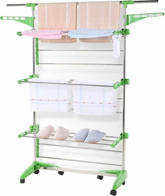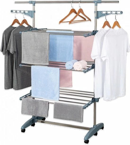 Are you looking for very large capacity clothes rack and help you out drying your clothes and other garments? Introducing the Herzberg Moving Clothes Rack a multifunctional cloth rack that will surely help you out to organize your drying out your laundry. The clothes dryer can accommodate be used to dry 2 machines washed clothes or 20m of linen. The spacing between the spreading bars has been studied in such a way that the clothes are perfectly ventilated for quick drying. Equipped with 2 door hangers, the rack allows you to extend dresses, shirts or any other garment likely to wrinkle. A metal and reinforced plastic structure for more robust. The simple and fast installation will take only a few seconds. The rack is mounted on 4 feet for more stability and 6 wheels to facilitate its displacement. Once folded it takes up very little space and can easily be stored behind a door or in a closet.