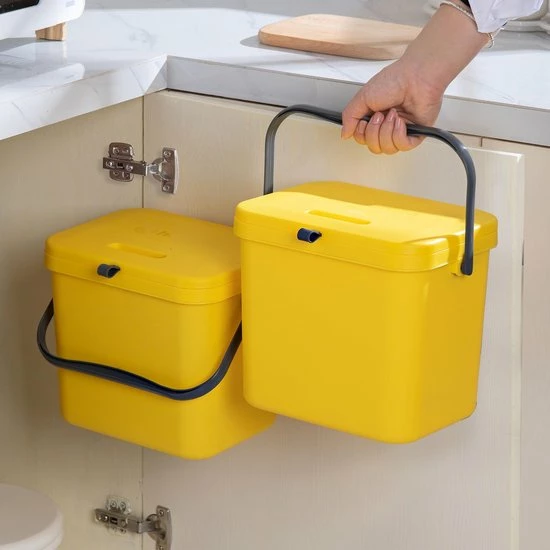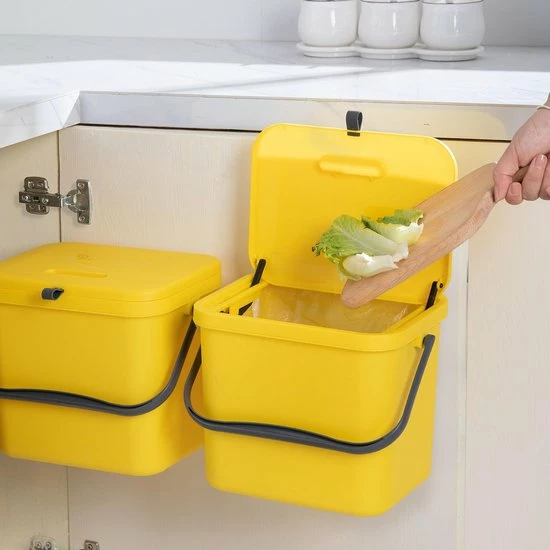 - ALTIJD NETJES: Door de prullenbak aan de binnenkant van uw keukenkastjes te bevestigen creëert u een verborgen oplossing voor afvalscheiding in uw keuken of badkamer.