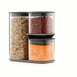Heb je ook zo een hekel aan die half dichtgevouwen zakjes die altijd een chaos in je keukenkastje creëren? Lijk je altijd een gebrek te hebben aan sluitclips? Met deze vershouddozen van het trendy merk Joseph Joseph reken je voorgoed af met deze problemen en houd je al je voedingswaren langer vers. De set bestaat uit drie dozen van verschillende afmetingen, die je makkelijk op elkaar kunt stapelen. De grootste verhouddoos heeft een capaciteit van 1,3 liter, terwijl de twee kleinere doosjes een inhoud van 500 milliliter hebben.