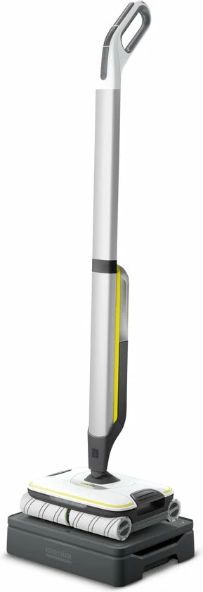 De snoerloze Floor Cleaner FC 7 van Kärcher vangt in één stap zowel droog als nat alledaags vuil op. Je hoeft niet meer te stofzuigen voordat je gaat dweilen, wat de helft van de tijd bespaart *. De technologie met vier rollen en tegenrotatie maakt snelle en effectieve reiniging mogelijk met een hoge vuilverwijdering en glijdt soepel over vloeren. Zelfs haar wordt probleemloos opgepikt dankzij het haarfilter. Vloeren zijn tot 20% schoner dan met conventionele moppen ** – tot aan de rand. Het gedoe met het slepen van een emmer behoort tot het verleden, aangezien de vloerreiniger zowel een schoonwatertank als een afvalwatertank heeft. Ook is er geen contact meer met vuil, omdat de rollers constant worden bevochtigd met vers water en het vuile water rechtstreeks in de afvalwatertank terechtkomt. De watertoevoer en de rotatiesnelheid van de rollen kunnen in twee reinigingsmodi worden aangepast aan de vloer. Er is ook een boostfunctie om hardnekkig vuil te bestrijden. De accuduur is 45 minuten, genoeg om een oppervlakte van ongeveer 135 m² schoon te maken. Het apparaat is geschikt voor alle harde vloeren (tegels, parket, laminaat, PVC, vinyl). Deze Premium versie wordt standaard geleverd met een extra set (steen)rollers en 500 ML universeel reinigingsmiddel. Bovendien is het apparaat voorzien van praktische ledverlichting bij de rollers voor nog meer schoonmaakgemak.