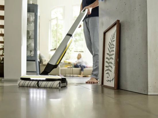 Je vloer is je podium. Met onze FC 7 Cordless laat je jouw vloer glanzen – en dat doe je met een ongeveer 20 procent diepere en krachtigere reiniging dan met welke poetsdoek dan ook*. In plaats van vuil heen en weer te vegen, pakken de microvezelrollers met zelfreinigende functie het eenvoudig op en transporteren het vuile water naar een aparte tank. Er blijft heel weinig restvocht op de vloer achter, wat betekent dat de show al na 2 minuten kan doorgaan!