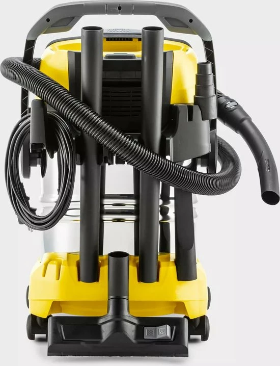 De veelzijdige WD 5 P S V-25/5/22 Workshop speciale nat- en droogzuiger is een must voor elke hobbywerkplaats. Het biedt een uitstekende zuigkracht en blijft indrukwekkend efficiënt met een stroomverbruik van slechts 1100 watt. De nat- en droogzuiger is voorzien van onder meer een robuuste RVS opvangbak van 25 liter, een snoer van 5 meter, een zuigslang van 2,2 meter, een vlakfilter en een vliesfilterzak. Dankzij het omkeerbare mondstuk verwijdert hij snel en grondig zaagsel en kleine stukjes hout op de vloer. Fijnere oppervlakken zoals houtwerk of een rommelige werkbank kunnen eenvoudig worden gereinigd. De afneembare handgreep maakt het mogelijk om verschillende mondstukken direct op de zuigslang te bevestigen, zodat ook in krappe ruimtes moeiteloos kan worden gewerkt. Waar stofzuigen niet mogelijk is, kan in plaats daarvan de handige blaasfunctie worden gebruikt. Een ander praktisch kenmerk is dat elektrisch gereedschap eenvoudig kan worden aangesloten op het ingebouwde stopcontact, wat een automatische aan/uit-schakelaar heeft. Vuil dat ontstaat door zagen of schuren wordt direct weggezogen. En het spreekt voor zich dat de stofzuiger wordt geleverd met andere bekende uitrustingskenmerken uit het beproefde Kärcher nat- en droogzuigerprogramma.