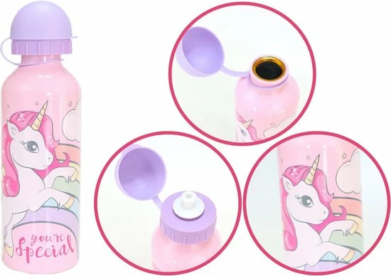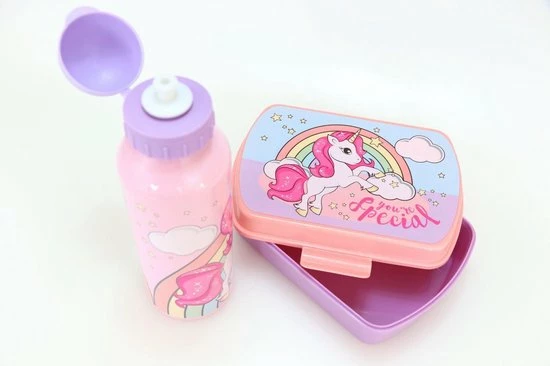 Unicorn broodtrommel met roze aluminium kinderdrinkfles
