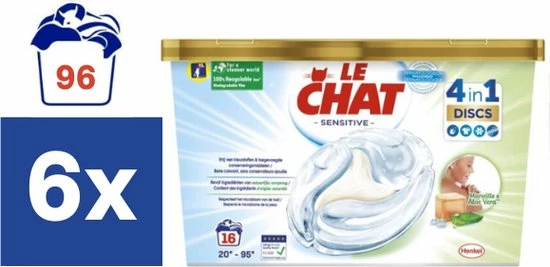 - Le Chat Sensitive 4-in-1 wascapsules bevat marseillezeep, dat gekend is voor zijn natuurlijke zachtheid en gemakkelijk uit te spoelen is