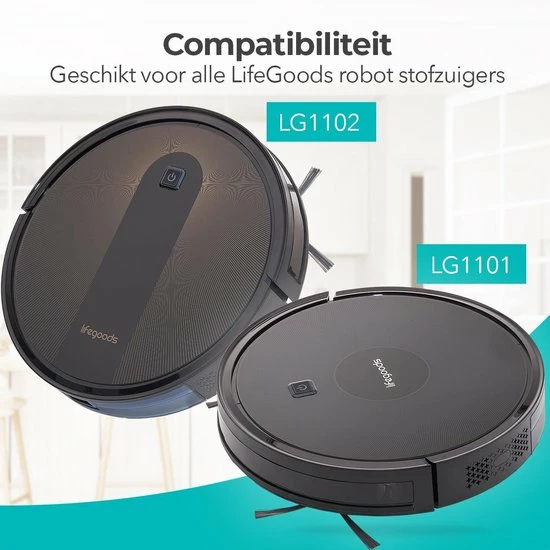 Deze reserve onderdelen set is geschikt voor de LifeGoods robot stofzuigers model LG1101 en LG1102. De onderdelen kunnen eenvoudig vervangen worden zonder gebruik van gereedschap. De set bestaat uit 4 zijborstels, een dweil, een hoofdborstel en 2 HEPA filters. Het HEPA filter zorgt voor een minimale heruitstoot van stof en filtert 99,95% van de stofdeeltjes en allergenen uit de lucht. Gemiddeld dient het HEPA filter om de drie tot zes maanden te worden vervangen. Dit is afhankelijk van de gebruiksintensiteit.
