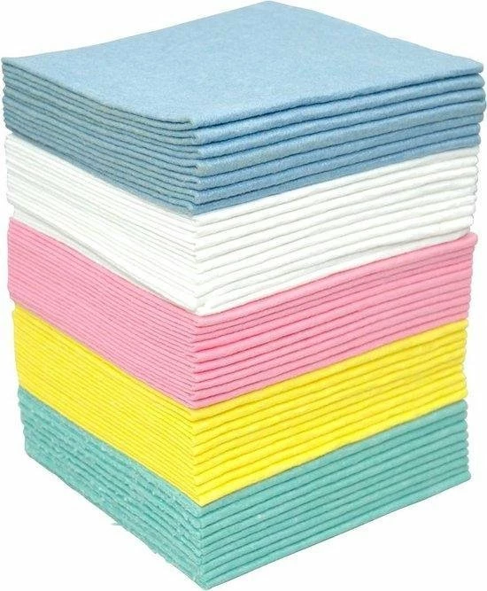 5 x 10 stuks in folie. Afmeting per doek ca. 38×38 centimeter.