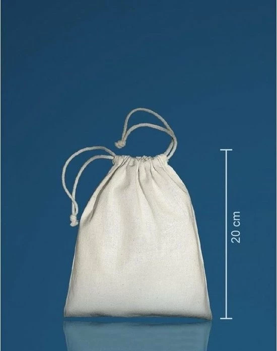 Canvas knikker zak met koord 15 x 20 cm. De zijnaden van het tasje zijn gevouwen en gestikt om krimpen te voorkomen. Geschikt voor ongeveer 80-100 gewone knikkers. Geschikt om te borduren en te bedrukken. Formaat: ca. 15 x 20 cm. Bedrukbaar formaat: ca. 7 x 12 cm. Materiaal: 100% katoen, 140 grams kwaliteit.