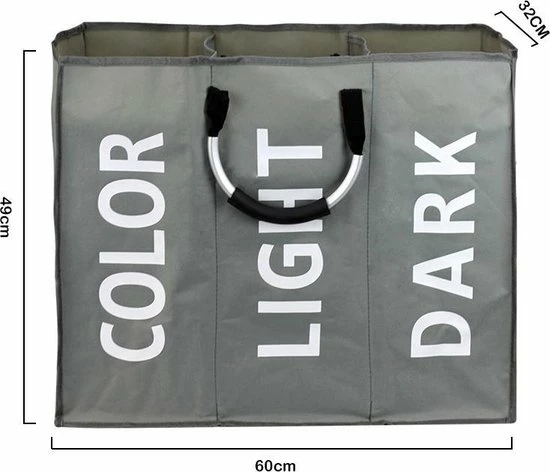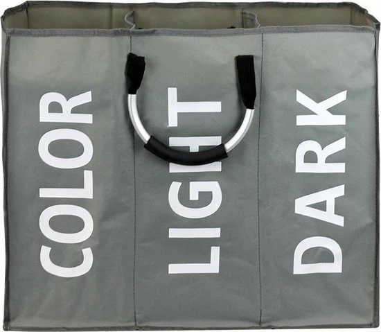 Merkloos TDR – Stoffen Waszak Met 3 Vakken En Aluminium Handvat – Capaciteit Ca. 94L – Donker Grijs
