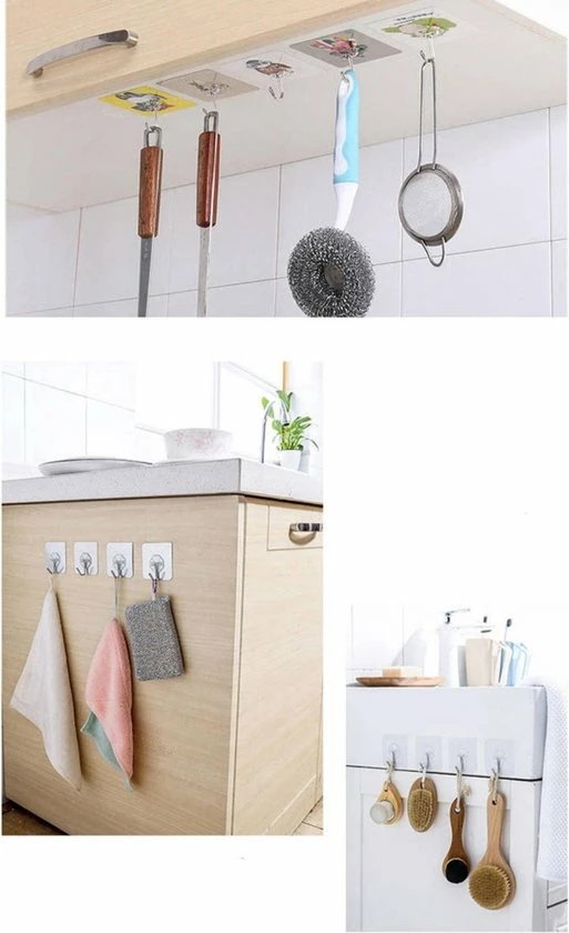 Met deze waterbestendige, supersterke zelfklevende ophanghaakjes, krijgen je spullen in de badkamer, keuken en berging in no-time en zonder stof of lawaai te maken, een eigen, makkelijk te bereiken plek.