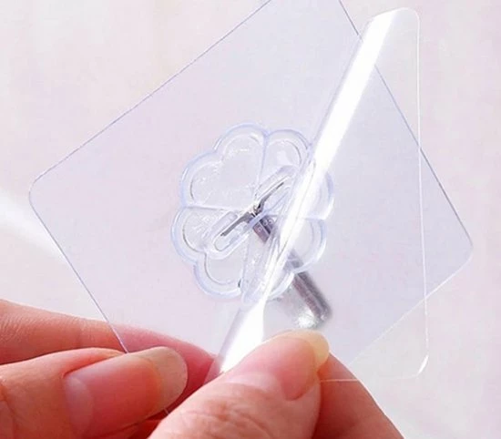 - Zorg dat de plaats waar je het haakje wil kleven goed droog is.