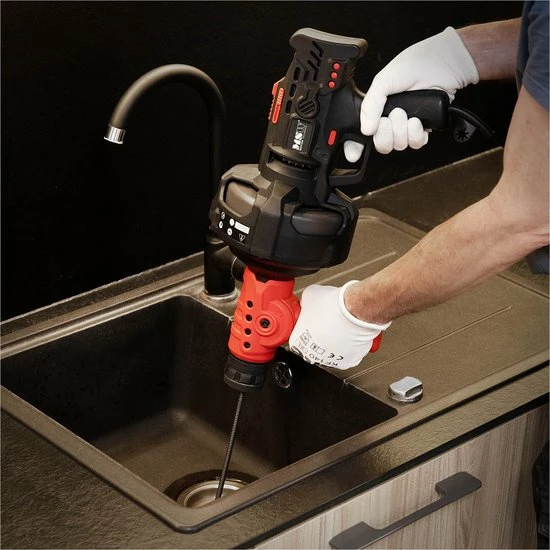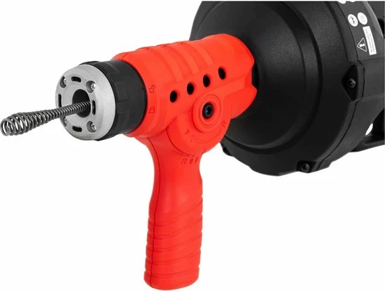 De grote clubvormige kop draagt ook bij aan de eenvoudige en effectieve plaatsing van de krachtige afvoerreiniger met een diameter van 10 mm. De afvoerreiniger past op alle standaard afvoerleidingen met een diameter van 19 tot 40 mm. De reinigingsschacht heeft een totale lengte van 7,5 m en wordt met een snelheid van 7,6 m / min in de buis gestoken. Dit maakt het elektrische afvoerpistool perfect geschikt voor buizen van verschillende lengtes.Het vermogen van de pijpreinigingsmachine gegenereerd door de 240 W motor zorgt ervoor dat zelfs hardnekkige blokkades grondig kunnen worden verwijderd met een rotatiesnelheid van 580 rpm. Bijzonder opmerkelijk is het vergrendelingsmechanisme van de afvoerreiniger waarmee u op een bepaalde diepte kunt boren, waardoor zelfs zwaar verstopte delen van het leidingsysteem eenvoudig kunnen worden gereinigd.De spoel van de elektrische afvoerboor bevindt zich in een trommel, waardoor deze bijzonder veilig te hanteren is. De elektrische afvoerslang is gemaakt van een veerkrachtig materiaal dat probleemloos kan worden gebruikt, zelfs in natte omgevingen. Dit elimineert ook de behoefte aan chemicaliën, voorkomt corrosie, verlicht de belasting van het milieu en zorgt te allen tijde voor heldere leidingen.