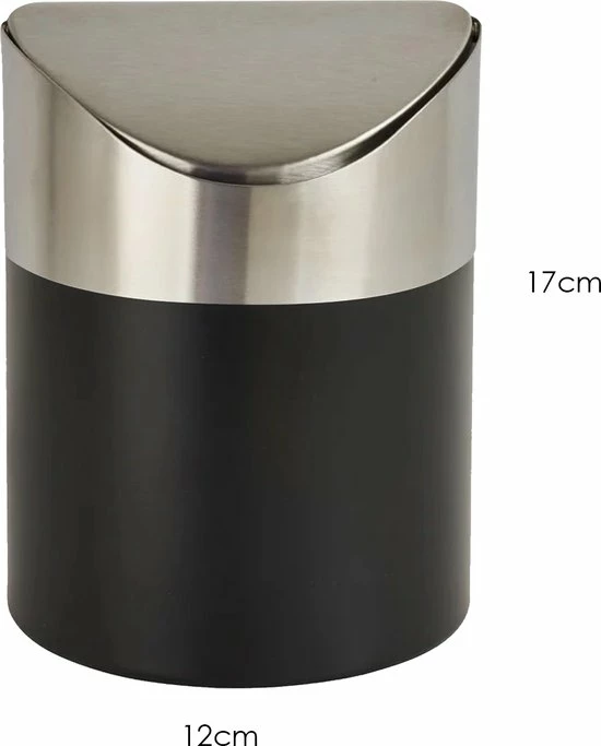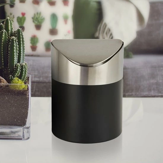 In deze prullenbak voor op de tafel kun je gemakkelijk alle propjes papier, lege pennen, schoonmaakdoekjes en veel meer kwijt. Ruim lekker op in huis en gooi alles in dit handige afvalbakje. Is hij eindelijk vol? Dan leeg je hem snel door het RVS deksel te verwijderen en de zak uit te nemen. Is geschikt voor standaard huisvuilzakken en staat mooi opgeruimd.