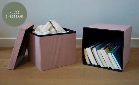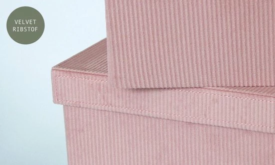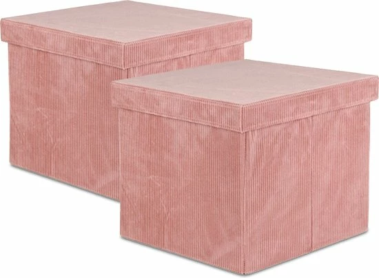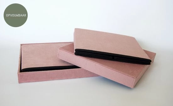 Een prachtige corduroy stof in de kleur roze zorgt voor een mooie en luxe uitstraling van de opbergers. De basis van de manden is gemaakt van drielaags vlies karton en daarom erg stevig. Je kunt de manden ook opvouwen als je ze even niet wil gebruiken.