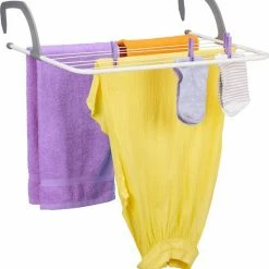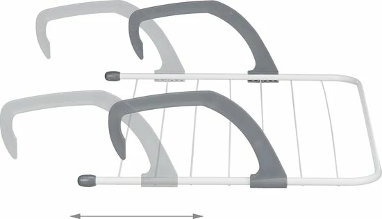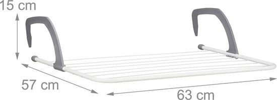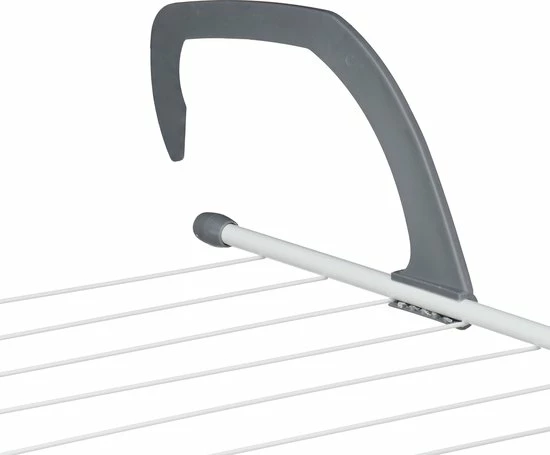 Op het hangende droogrek kun je op een ruimtebesparende manier theedoeken, sokken of ander wasgoed ophangen. Het stevige wasrekje kun je aan de diepte van de balkonreling of de verwarming aanpassen. Bovendien is hij geschikt om binnen en buiten te gebruiken. Het wasdroogrek kun je ook aan douches of open deuren bevestigen. Het hangende wasrek kan ruimtebesparend opgeborgen worden of meegenomen worden naar de camping. Daarnaast weet het compacte droogrekje te overtuigen met zijn stevige materiaal.