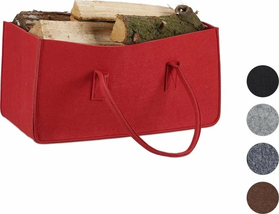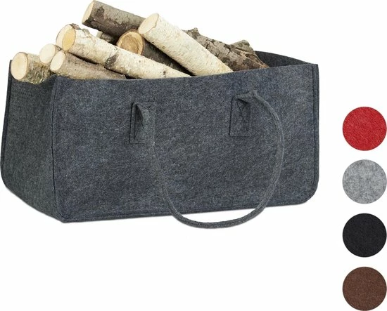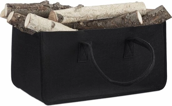 Met deze stevige viltmand is het vervoeren en opslaan van haardhout, tijdschriften en vele andere voorwerpen geen enkel probleem. Bovendien is het rustieke uiterlijk bijzonder decoratief. De flexibele mand is ook heel erg handig in de badkamer, gang of woonkamer. Ook als boodschappentas is de houtmand geweldig door de twee handvatten.