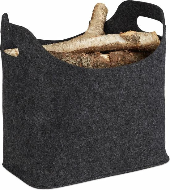 Met deze robuuste houtmand is het vervoeren en opslaan van haardhout, tijdschriften en vee andere voorwerpen geen enkel probleem. De rustieke vilt-look van de houtmand is bovendien een echte eye-catcher. Bovendien is de flexibele mand een heel erg handig in de badkamer, gang of woonkamer. Ook als boodschappentas is de houtmand geweldig door de twee handvatten.