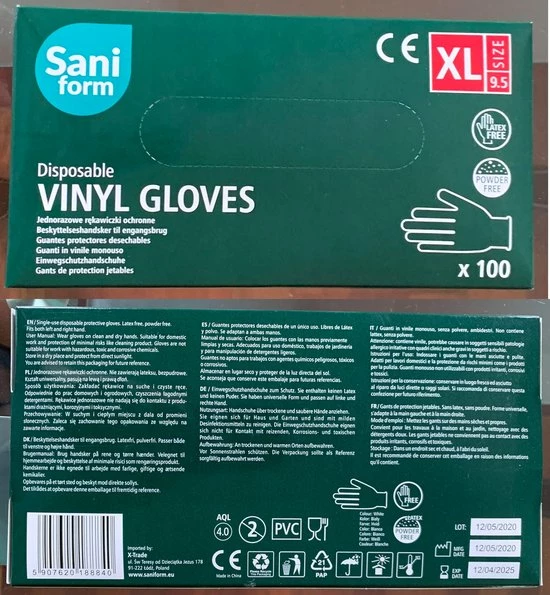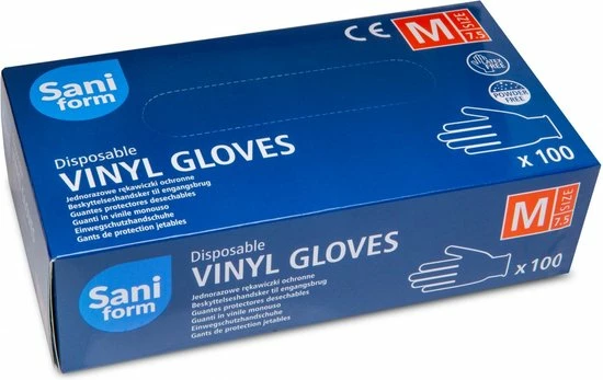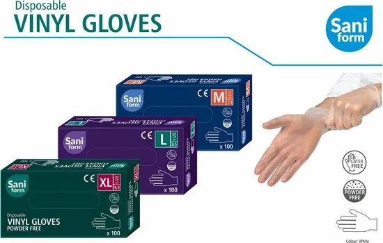 Kwalitatieve Vinyl wegwerphandschoen van het merk Saniform.