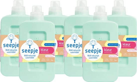 Seepje wasmiddel Kleur met ‘Magische Magnolia’-geur is voor 99,8% natuurlijk en is ’n echte kleurige krachtpatser. Reinigt jouw was effectief en zorgt dat kleuren langer mooi blijven. In dit pakket zit 6x Wasmiddel Universeel en dat is goed voor maar liefst 138 kleurrijke wasjes! Genoeg voor ‘n half jaar, dus. Da’s nou handig!