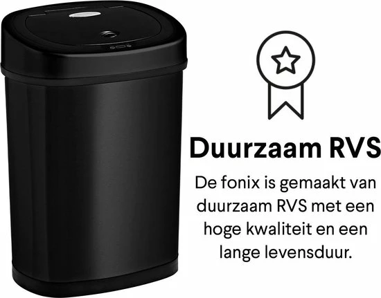 Als de sensor 5 seconden niets heeft gedetecteerd gaat het deksel automatisch dicht. Zo voorkom je onnodig vieze luchtjes. Wil je dat de deksel langer open blijft staan? Dan kan dat. Druk op de ‘open’ knop en de deksel blijft openstaan totdat je op de ‘sluit’ knop drukt. Erg handig bij het verwisselen van de vuilniszak.