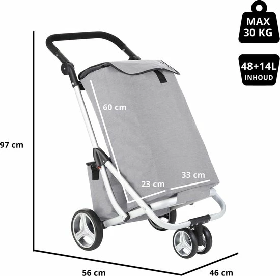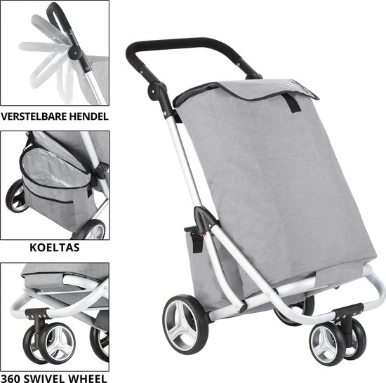 ✓ Solide boodschappenwagen met boodschappentas én koeltas.