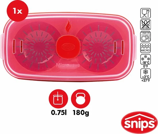 SNIPS® maakt gebruik van een speciaal materiaal dat betere organoleptische eigenschappen bezit en speciaal gemaakt is voor het koken in de magnetron: het geeft geen plastic smaak af en verandert de kwaliteit van het voedsel niet. Het weerstaat gemakkelijk langdurige hoge temperaturen.