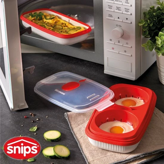 Met deze 2 in 1 microgolfoven set, kan iedereen binnen enkele minuten succulent smakende gepocheerde eieren of omeletten maken, zonder de organoleptische eigenschappen van het ei te veranderen. Het product is ontworpen om een optimale verdeling van microgolven en een goede stoomcirculatie tijdens het koken te garanderen.