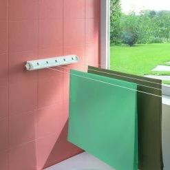 Het Portofino roldrooglijn is een compacte oplossing voor extra droogruimte. Met de drooglijn automaat Portofino maak je een grote droogmogelijkheid in een beperkte ruimte. Het rek bevestig je aan de muur en de 5 nylon draden zijn tot 4,2 meter uittrekbaar voor een totale uithanglengte van 21 meter hebt. De Portofino is voorzien van een automatisch blokkeersysteem bij het uittrekken van de draden en een automatisch oprolsysteem voor het inrollen van de draden. De Portofino heeft een breedte van 41,5 cm en wordt met montagemateriaal geleverd. Inclusief 2 jaar garantie.