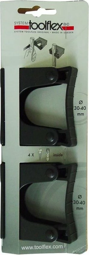 Twee gereedschaphouders van Toolflex voor gereedschap met een diameter van 30 tot 40 mm. De houders kunnen overal aan vastgemaakt worden. De gereedschaphouders van Toolflex zijn perfect in combinatie met de aluminium rail, waarmee de houders gemakkelijk verschoven kunnen worden.Bijzondere kenmerken Eenvoudige installatie Perfect in combinatie met de aluminium rail Inclusief schroeven en pluggen Specificaties: Artikelnummer: 54255221Barcode: 7317275220013Merk: TOOLFLEXNetto gewicht (kg): 0,12