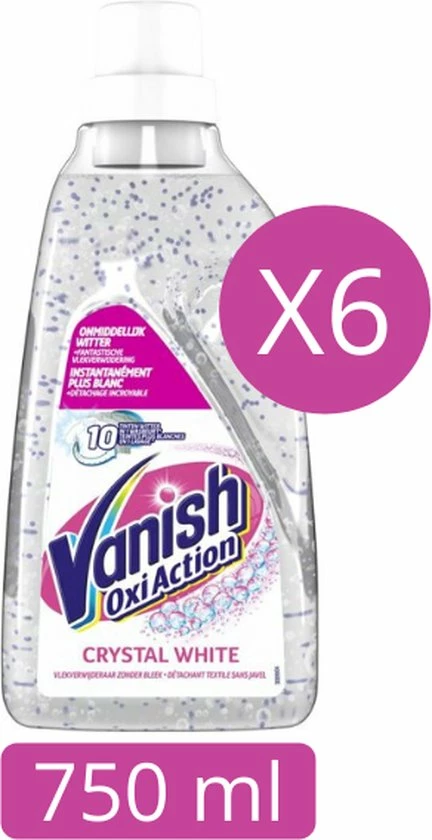 Ontdek Vanish Oxi Action Crystal White, de vlekverwijderaar zonder bleek voor je dagelijkse witte kleding. De Oxi Action formule verwijdert vlekken al tijdens de eerste wasbeurt. Daarnaast helpt de Vanish Oxi Action Crystal White bij het wit houden van al je witte kleding, zelfs na 50 wasbeurten.