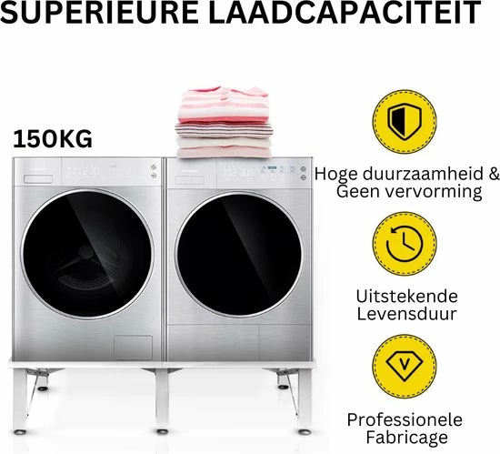 Heb je geen zin meer om diep te bukken om je wasgoed in-en uit te laden? Met de Vevor witgoed verhoger lossen wij dit probleem stijlvol voor je op. Het gemiddelde huishouden doet meerdere wassen per week, en dat betekent ook veel bukken. Het ijzersterke wasmeubel is geschikt voor een wasmachine en droger tot 150 kg. Het meubel is een geheel, met krachtige grip wat ervoor zorgt dat je machines niet tegen elkaar aan trillen.