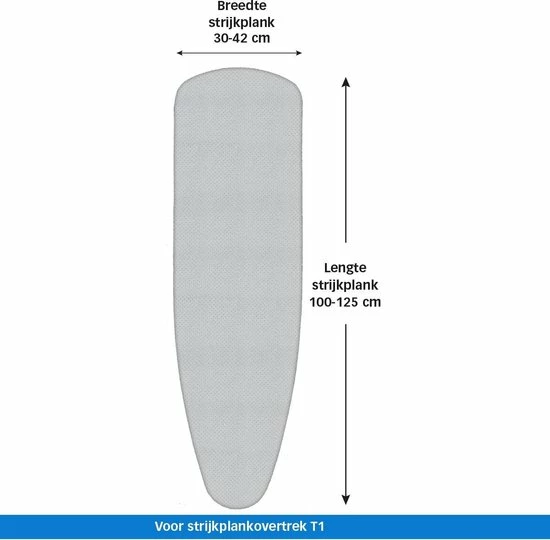 Maat M is geschikt voor strijkplanken met lengte 100-125 cm en breedte 30-42 cm.
