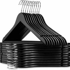 Deze luxe hangers zijn ontworpen om iets verfijnder te zijn dan gewone hangers, maar zonder in te boeten aan stevigheid. De zijkanten van de hanger zijn ook afgeplat om meer ruimte te besparen. Sta versteld hoeveel je in je kast hebt!